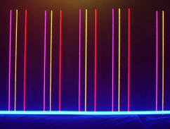 Neon wire is a new form of flexible lighting based on the electroluminescent principle. The cable consists of a centre core of phosphor coated copper wire with a spiral wrap of two fine wires covered with a plastic outer sheath. When a voltage is applied across the wires, the phosphor glows. This gives a neon like effect. This is a cold light source which is currently available in 7 colors and 4 sizes ranging from 2.3mm, (2.5mm high brightness) 3.2mm 5.0mm. Maximum length on a roll is 250metres. Laser Electronics has developed the first in a range of Dmx 512 control units for driving flexible neon wire. These control units have a very fast response time giving an almost strobe like effect. All channels can chase, flash, sequence or have continuous output when controlled with our pc-based software or any Dmx lighting desk. Neon control units are available in many different sizes. The smallest unit being 8 channels with 15 meters of neon wire per channel (total 120 meters). Larger systems are available up to 40 channels with 50 meters of neon wire per channel.